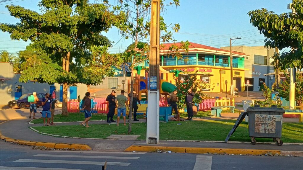 Uma briga violenta registrada na tarde desta terça-feira (2) deixou moradores assustados na Praça do Teixeira, em Cacoal. Um grupo de homens se envolveu em um confronto com uso de paus, e pelo menos um deles foi atingido com duas facadas durante a confusão.