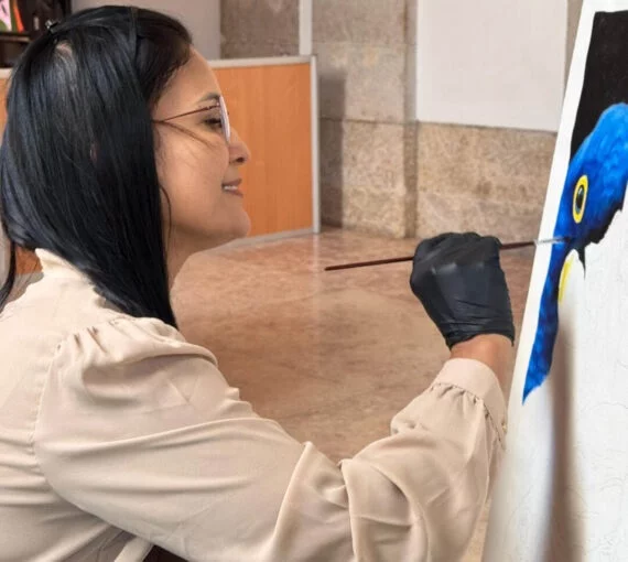 Durante os quatro dias do evento, a artista plástica rondoniense encantou o público com sua técnica realista, cores intensas e traços expressivos que retratam a riqueza amazônica. Além da exposição principal, suas obras também serão exibidas em uma renomada galeria de arte em Portugal, ampliando o alcance da produção artística de Rondônia.