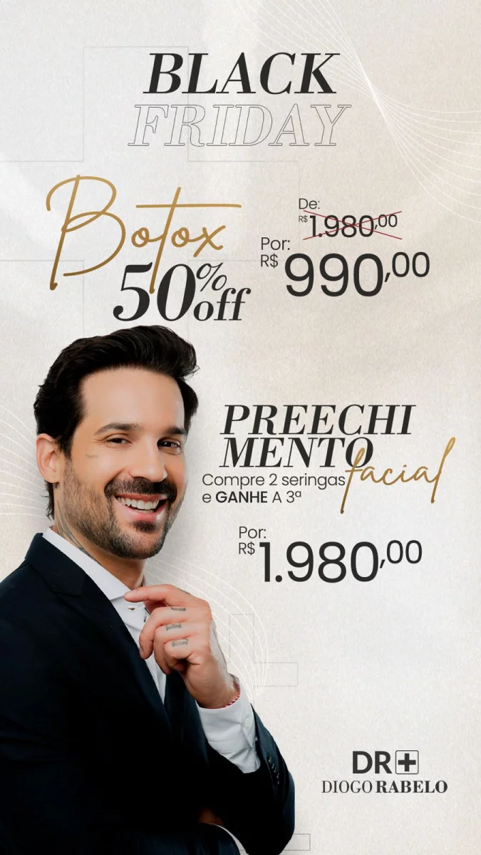Entre os dias 6 e 13 de novembro, o profissional atenderá pacientes interessados em realizar procedimentos estéticos avançados, com destaque para o Botox Full Face, disponível pelo valor promocional de R$ 990, parcelados em até 12x.