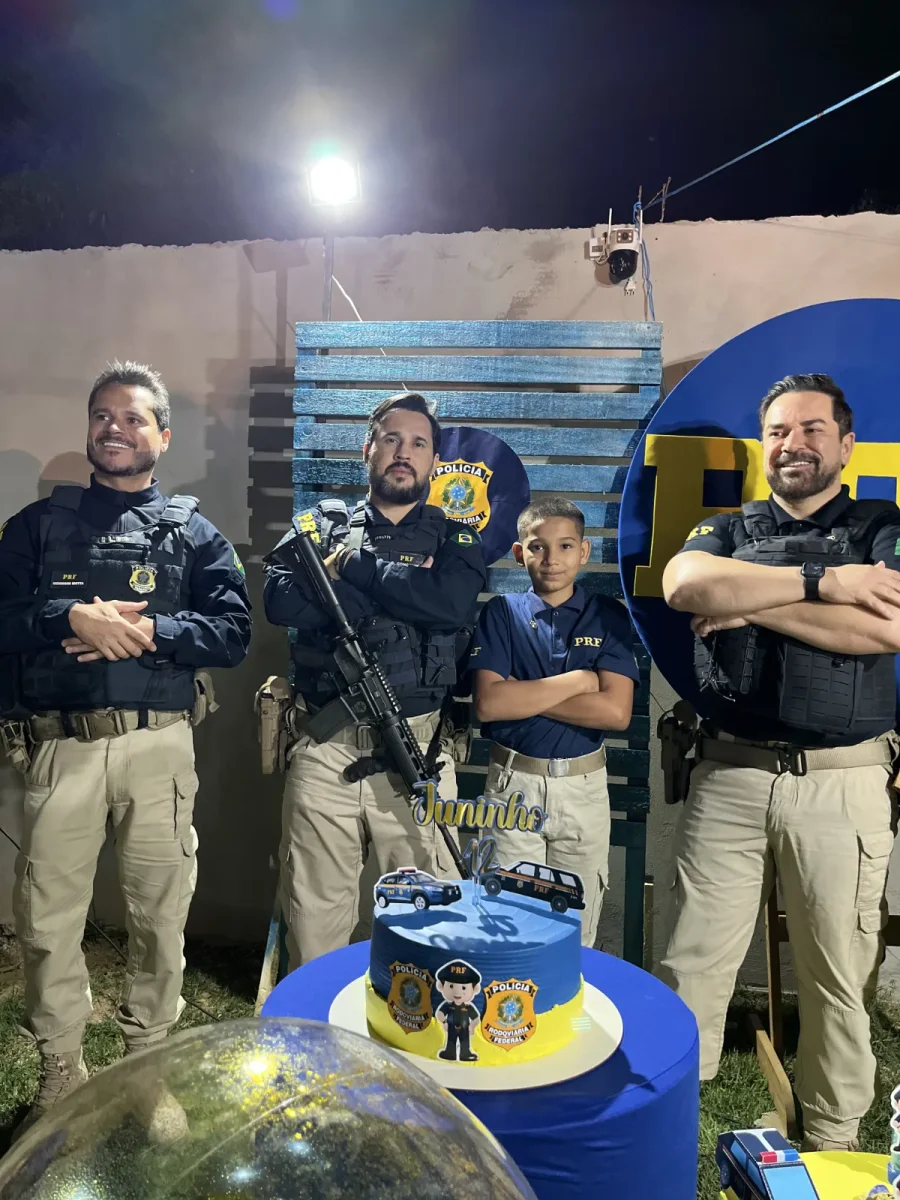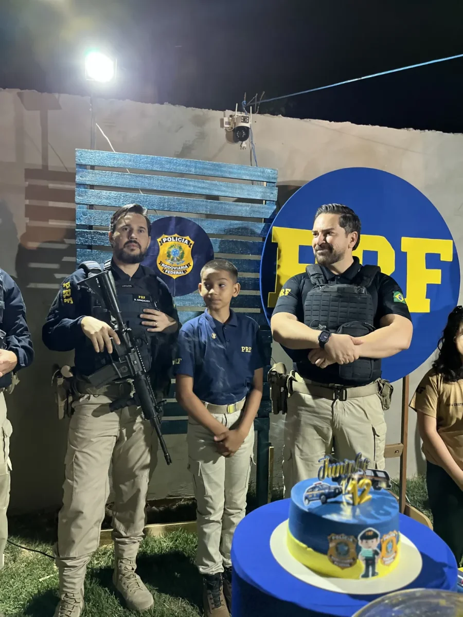 A mãe, Neidiane Pires, contou que a ideia nasceu como uma “festinha de gratidão ao Senhor” após um período de luto profundo. Ao escolher o tema, Juninho não hesitou: PRF. “É o sonho dele. Ele sempre fala: ‘Quando eu crescer, quero ser PRF, vou trabalhar na rodovia’”, relatou.