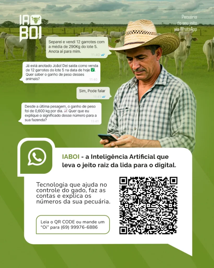 “A IABOI surgiu para facilitar a gestão da atividade pecuária, por meio da Inteligência Artificial, compilando dados de rebanho e manejo. A ideia é facilitar a vida do produtor rural e contribuir com a gestão. Nós temos muito que agradecer aos veículos de imprensa, que tem aberto espaço para que possamos apresentar essa nova ferramenta e facilitar o acesso do produtor à IABOI”, destaca Oberdan.