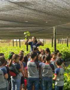 As atividades contaram com a participação de turmas da Escola Municipal Sarah Kubitschek, de Migrantinópolis, e da Escola Polo Municipal E. I. F. Francisca Duran Costa. Durante as visitas, as crianças conheceram de perto o trabalho do viveiro, observaram a produção de mudas e aprenderam sobre a importância da recomposição florestal para a Amazônia e para as comunidades locais.