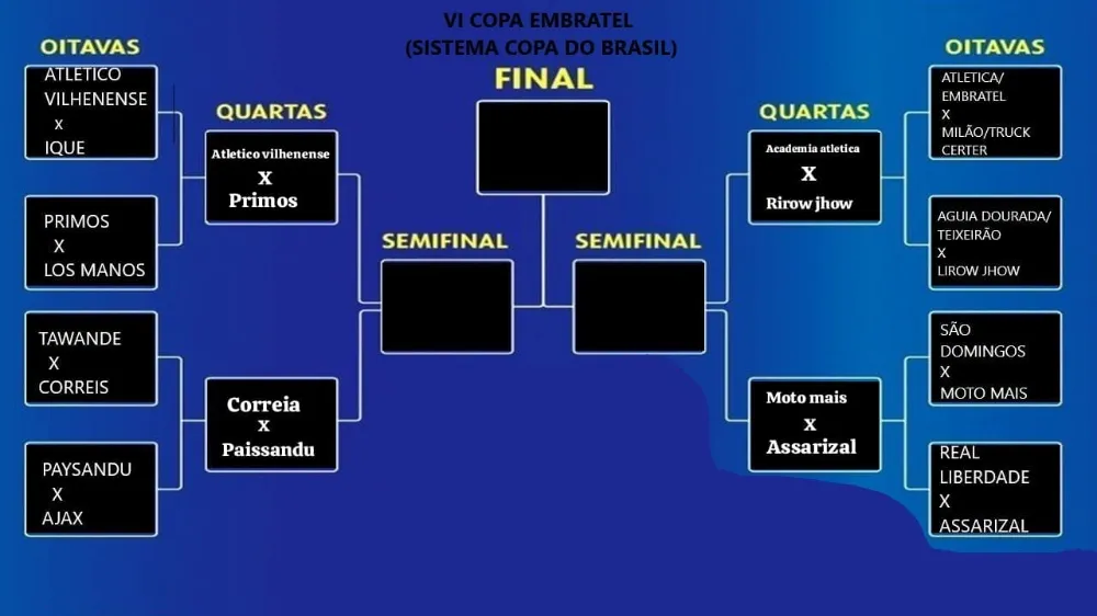 Dois confrontos terminaram em 2-0. O Lirow Johw superou o Águia Dourada/Teixeirão, enquanto o Primos eliminou o Los Manos pelo mesmo placar.