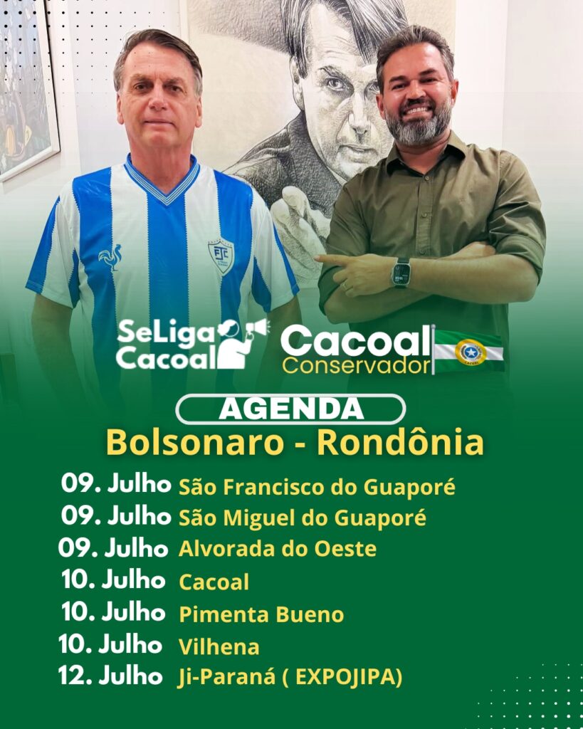 O Jair Bolsonaro confirmou sua presença em Rondônia para uma série de compromissos em julho, conforme agenda anunciada oficialmente por Bruno Scheid, liderança política que tem se destacado no estado. A divulgação feita por Scheid, responsável por articular o roteiro da visita, evidencia sua proximidade e prestígio junto ao presidente.