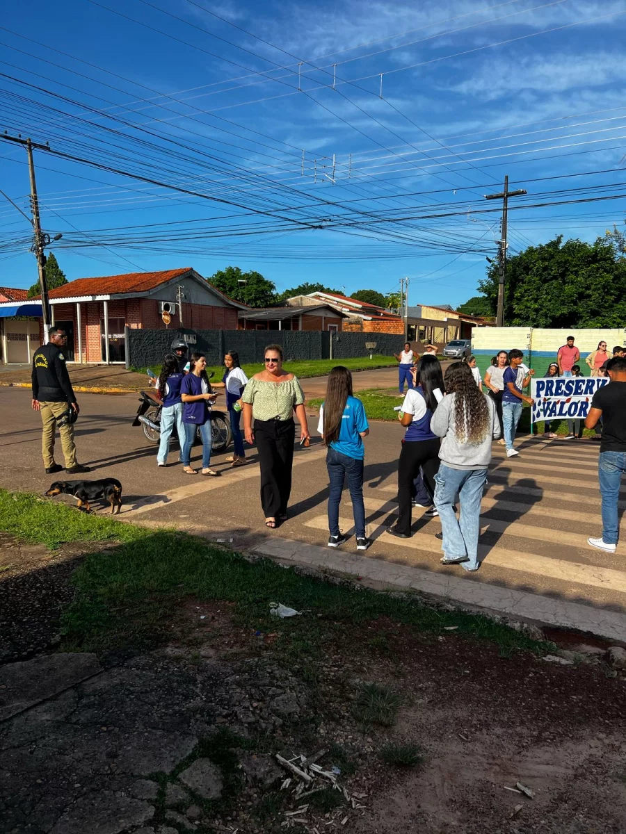Durante a caminhada educativa pela Avenida das Mangueiras, os participantes exibiram faixas produzidas na escola, reforçando mensagens sobre responsabilidade ambiental e conservação dos recursos hídricos. A mobilização teve seu ápice em um Pit Stop educativo realizado em frente à base da polícia militar, com autorização prévia da SEMTTRAN, promovendo atividades interativas com a comunidade e destacando os desafios impostos pelas mudanças climáticas não só para a Amazônia, mas para todo o planeta.