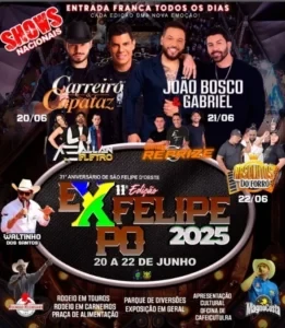 Além de valorizar a produção rural e promover oportunidades de negócios, a Expofelipe também se destaca como um espaço de cultura, lazer e integração comunitária, reunindo famílias, produtores, expositores e visitantes em um ambiente de celebração e convivência.