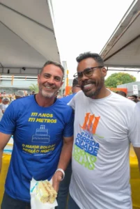 Um dos pontos mais aguardados foi o bolo gigante, distribuído de forma organizada em uma fila que se formou desde as primeiras horas da manhã. A celebração ocorreu em clima de tranquilidade e reuniu famílias de diferentes bairros.